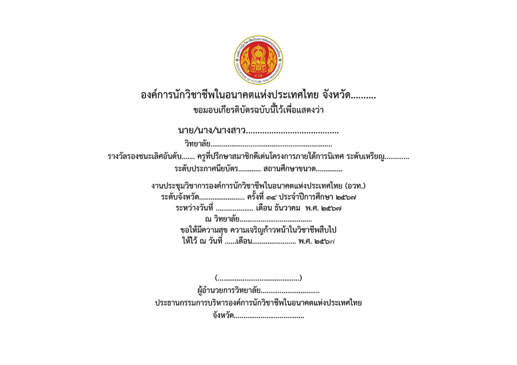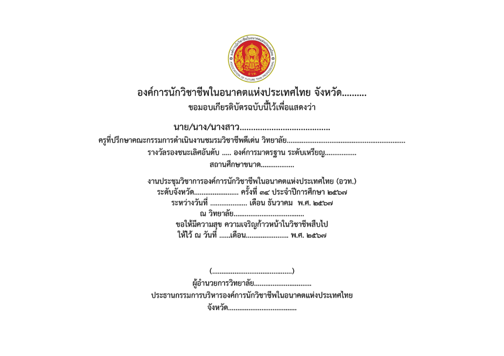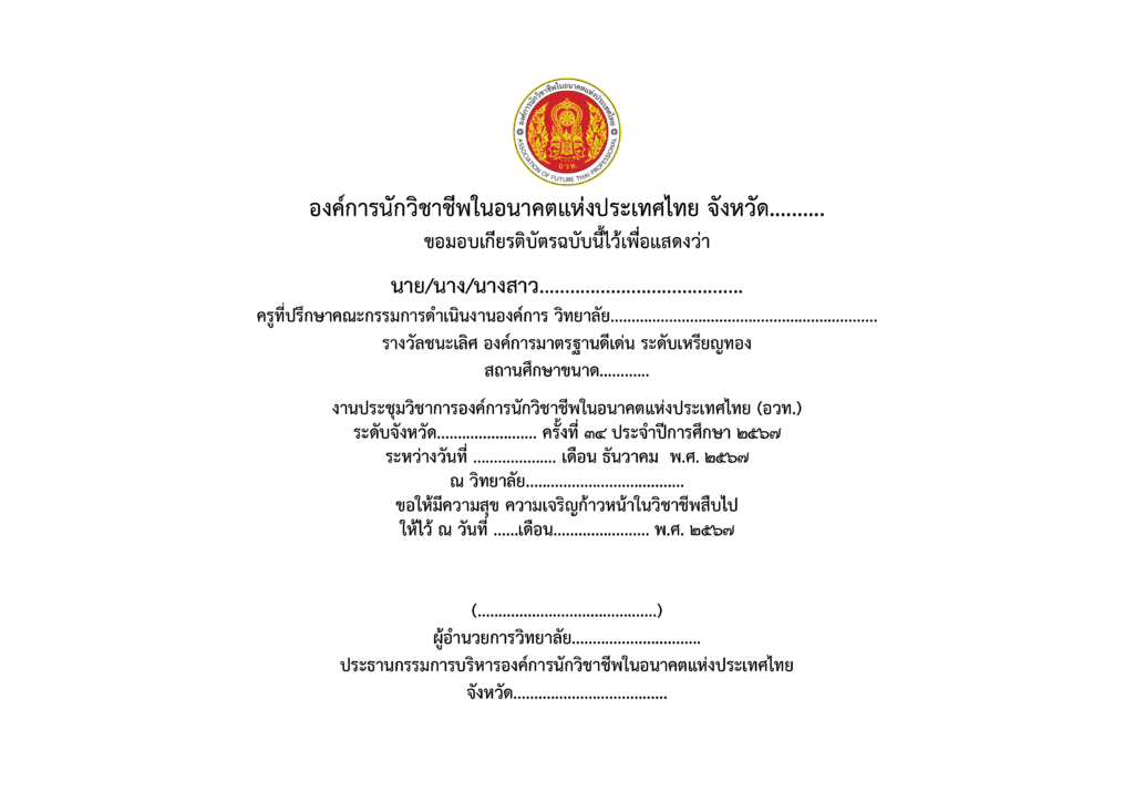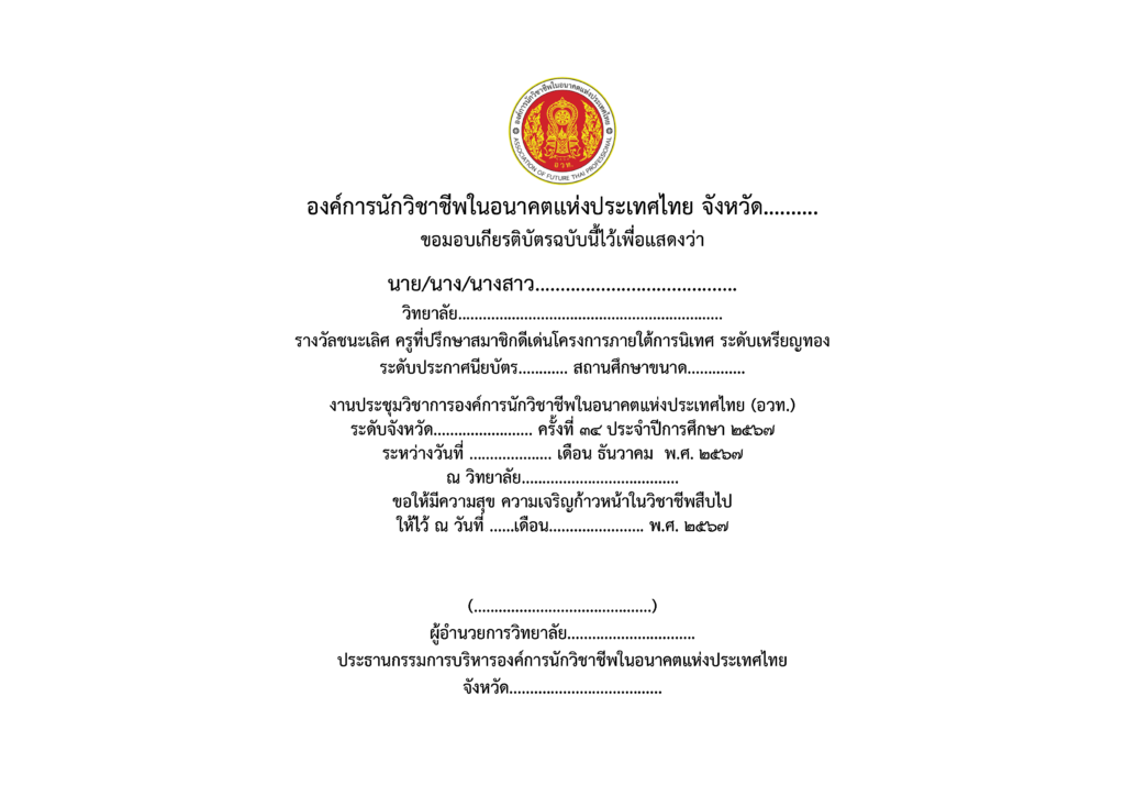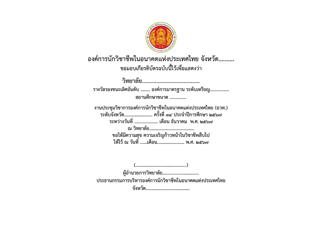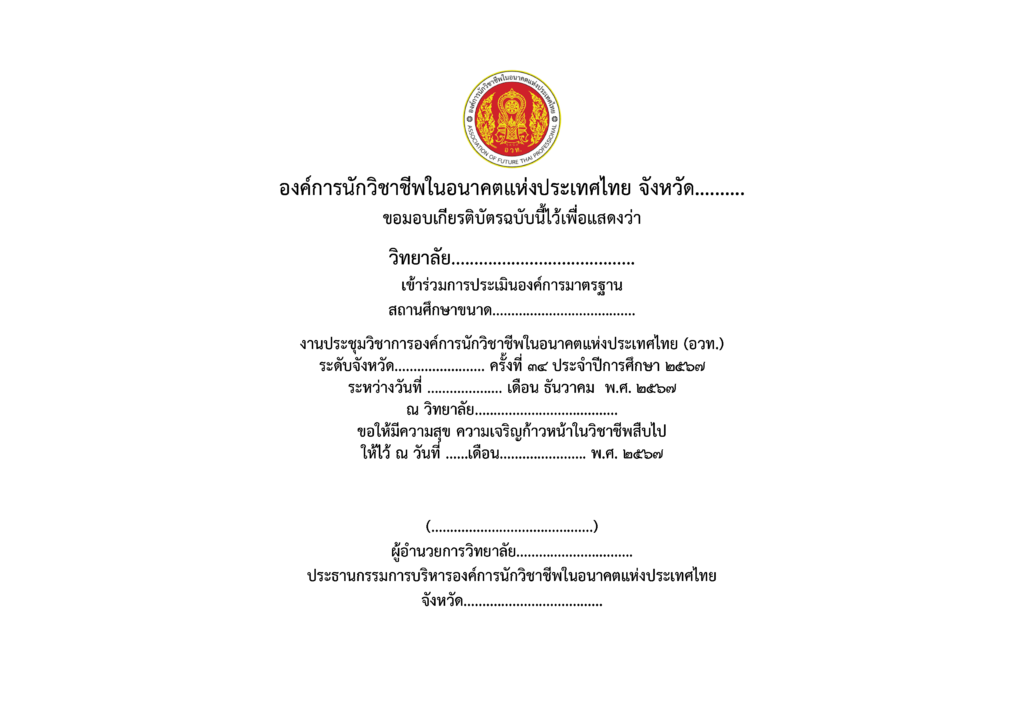 การประเมินองค์การมาตรฐานดีเด่น และสมาชิกดีเด่นภายใต้โครงการนิเทศ องค์การนักวิชาชีพในอนาคตแห่งประเทศไทย(อวท.) ประจำปีการศึกษา 2567