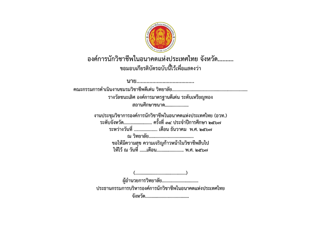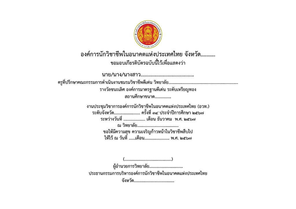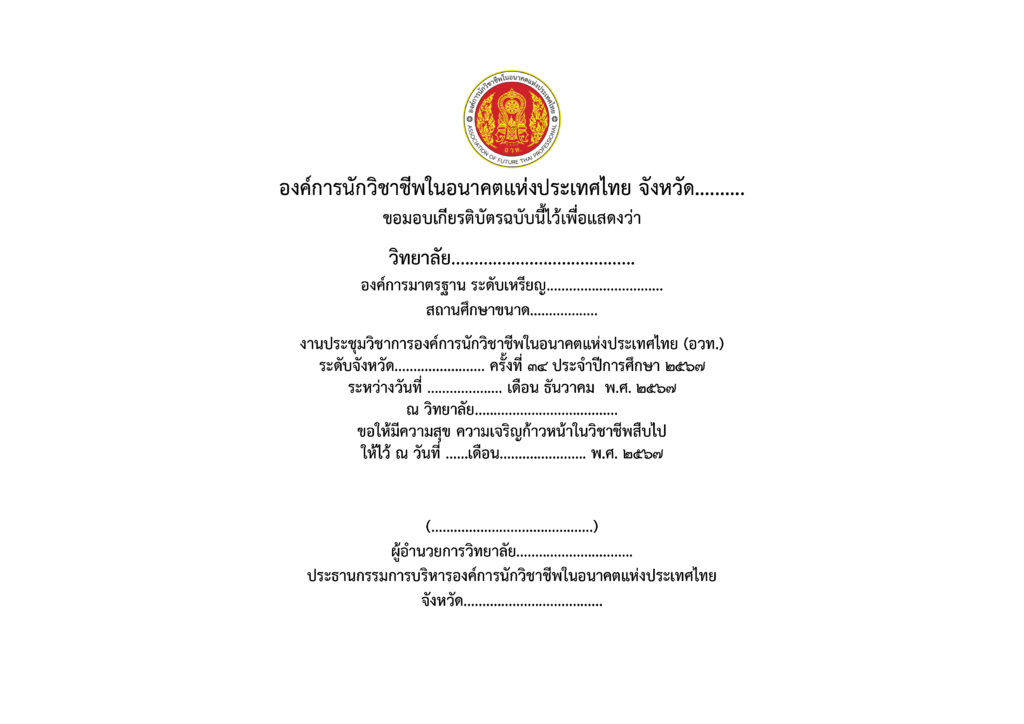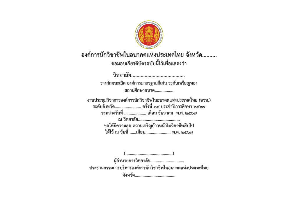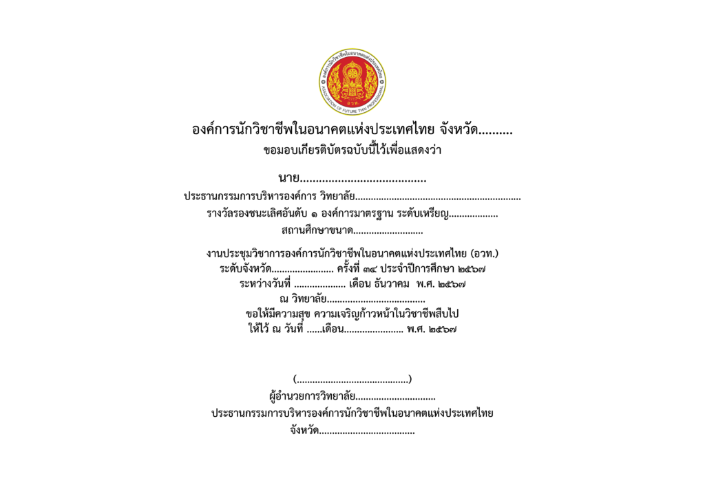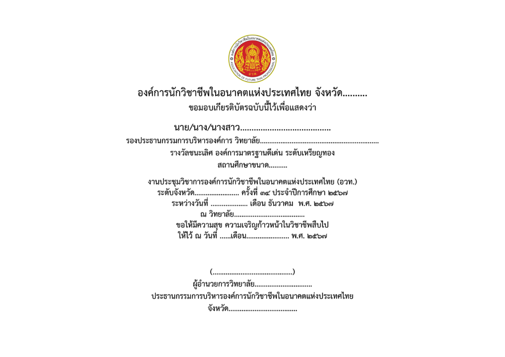 การประเมินองค์การมาตรฐานดีเด่น และสมาชิกดีเด่นภายใต้โครงการนิเทศ องค์การนักวิชาชีพในอนาคตแห่งประเทศไทย(อวท.) ประจำปีการศึกษา 2567